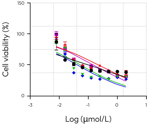 Dose-response curves generated from patient-derived colorectal cancer organoid lines treated with oxaliplatin, Irinotecan and 5-FU.